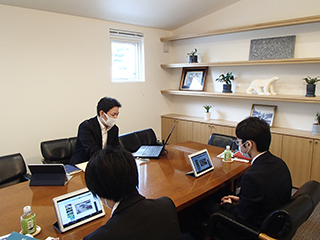 - 令和4年3月23日、道内の大学3年生計3名が、会社見学をしました。会社見学では、「半世紀の歩み」を見てもらい、髙橋総務課係長が業務内容を説明し、会社概要や取り組んでいる事を説明し、事務所内を説明しながら見学をしました。